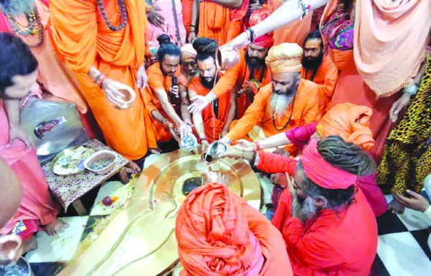 जूना अखाड़े की छड़ी यात्रा पहुंची दक्ष महादेव मंदिर